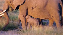 \\<br>The calf seeks Renees affection while she eats.<br>Elephant calf takes a tumble while touching trunks with his mom.