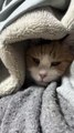 A Cat Sitting Inside a Blanket, Making Soft Purring Sounds.” 🐾😺