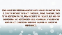 Most popluar one of the best espresoo machine under 200 available in the market. <br />For more information and reviews , check our website: <br />http://www.espressoexpertreviews.com/ <br /> <br />For more machine under 200 category check link : <br />http://www.espressoexpertreviews.com/best-espresso-machines-under-200/ <br /> <br />As a coffee lover by heart I has researched on the best espresso machines and how the coffee drinks are made rememberable. Here we would like to share with you the best espresso machines under 200 ,500 ,1000 range with their reviews and specifications. <br />Select one and make the best coffee drinks at the comfort of home. Enjoy your coffee . Be your own espresso expert .!!!