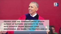 White speaking at Rutgers University, President Obama gives a meaningful speech on climate change and how it's fought in congress. He also mentions how climate change will affect the next generation of people. He also gives a funny example of a Senator with a snowball.