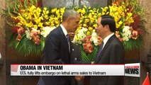 Vietnamese President Tran Dai Quang said on Monday the United States had decided to "completely lift" its embargo on trade in lethal arms with the Southeast Asian country.<br />"Vietnam very much appreciates the U.S. decision to completely lift the ban on lethal weapon sales to Vietnam, which is the clear proof that both countries have completely normalized relation," Quang said through a translator at a joint news conference with U.S. President Barack Obama.<br />Obama said the United States was fully lifting the ban but the sale of arms would depend on Vietnam's human rights commitments.
