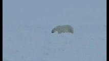 Quitín Mira, Sechu López y José Trejo graban un oso polar durante su expedición al Polo Norte magnético.