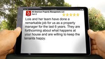 http://www.allamericanpropertymgmt.com/ (586) 246-8189 All American Property Management, LLC Sterling Heights reviews<br />5 Star Review<br /><br />Lois and her team have done a remarkable job for us as a property manager for the last 6 years. They are forthcoming about what happens at your house and are willing to keep the tenants happy. <br /><br />All American Property Management, LLC<br />6043 19 Mile Rd<br />Sterling Heights MI<br />48314