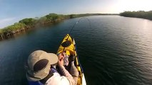 Impressive footage of a shark leaping out of the sea and barrel rolling repeatedly after it was hooked by a kayak fisherman off the coast of Florida, USA.<br /><br />The video, filmed around a mile off Navarre Beach on Saturday, shows the large spinner shark leaping out of the water and spinning in an attempt to free itself. <br /><br />"I did my best to keep this crazy shark out of my kayak," the filmer wrote online. <br /><br />"It finally broke me off on its final set of spins."