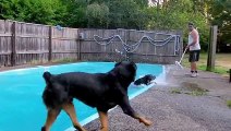 Rottweiler jump in swimming pool - Part 2