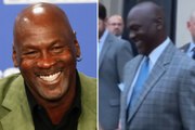 Michael Jordan laughs after fan plays Be Like Mike outside courthouse