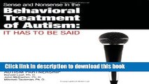 Read Books Sense and Nonsense in the Behavioral Treatment of Autism: It Has to Be Said E-Book