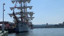 Cartagena (Colombia), 18 jun (EFE).- (Imágenes: Ricardo Maldonado) El buque escuela ARC "Gloria" de Colombia con 155 tripulantes abordo zarpó este viernes desde el puerto de Cartagena de Indias para su crucero de cadetes número 54 en el que visitará ocho puertos de Asia, Europa, África y América. <br /> <br />Palabras clave: efe,colombia,buque,gloria,armada