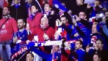 Footage of an unpleasantly loud banger going off outside a bar in Marseille, France, scaring members of the crowd as they sung the French national anthem. <br /><br />The video, filmed before France's Euro 2016 clash with Albania on Wednesday, shows fans gathered around a TV in the city's port singing La Marseillaise when the firework goes off, frightening some people. <br /><br />The filmer later wrote online: "Given what had happened in Marseille a few days earlier with the Russians, and given the tense security situation in France, it was not a clever thing to do.<br /><br />"Bangers are obviously largely harmless, but that kind of thing puts people on edge."