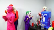 Harley Quinn Flies Catwoman Flies vs Spiderman & Frozen Elsa Captain America Pink Spidergi