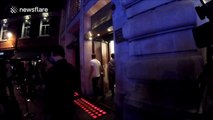 Footage of singer Kylie Minogue leaving the "Absolutely Fabulous" afterparty in central London on Wednesday.