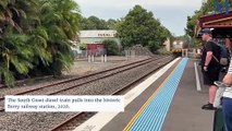 The South Coast diesel train pulls into the historic Berry railway station.