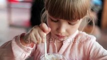 Kid Sitting At Cafe And Eating Ice-cream