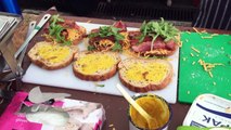 That are trend from VietNam <br />With they so cheap, about 0.5$/bread. So cheap huh? <br />This dish is made quite simple, is pressed flat bread, brushed with salt and chilli and then baked to charcoal. Then cut small pieces add more spice cake as chili, cheese sauce, rub cotton, onion ... Saigon style for more delicious cake.