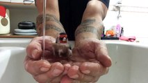 Ce gars se sert de ses mains afin de créer un bain d'oiseaux.