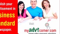 Business Standard Classified Advertisement Rates for Matrimonial, Name Change, Business etc.