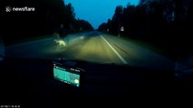 Car hits moose on road in Latvia