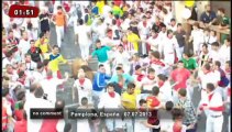Footage of people and bulls running into an arena in Pamplona, Spain, on Monday, during the San Fermin festival.
