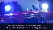 More than 20 people in Germany have been injured, four severely, after a 17-year-old with an axe went on the rampage on a train. Report by Cordingleyj. Like us on Facebook at http://www.facebook.com/itn and follow us on Twitter at http://twitter.com/itn