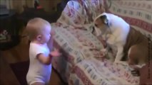 Un bébé parle avec un chien