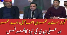 Governor sindh Imran Ismail, Asad Umer and Ali Zaid's news conference
