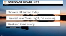 Showers are a lot more spotty today as temperatures dip, but more scattered rain is expected over the weekend before drying out early next week.