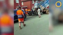 Comment décharge une remorque en béton à l'aide de quelques pneus.