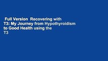 [Download] Recovering with T3: My Journey from Hypothyroidism to Good Health Using the T3 Thyroid