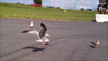 sea gulls eat chips thrown by man...