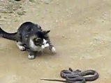 Cat Fights Snake at road