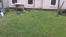 Tiny kitten adorably chases after ducks