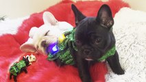 'Adorable Frenchie puppies posing for a Christmas-themed photoshoot'