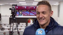 Giovanni van Bronckhorst tijdens de persconferentie vooraf aan Feyenoord - Excelsior