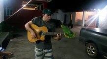 Au Brésil, un guitariste et un perroquet chantent en duo. L'Amazone posé sur le manche de la guitare accompagne l'homme en sifflant, en poussant quelques cris et même en chantant.