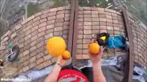 A unicyclist has been performing stunts on top of a chimney in Romania that is 250m high - one of the tallest structures in the city of Targu Jiu.