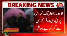 Female anchor falls from crane at PTI rally
