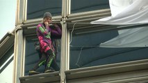 A heart-stopping video has emerged of a man free climbing a crane mounted on the top of a skyscraper in Hong Kong.<br /><br />The footage, shot with a helmet mounted camera and a drone, captures the man's climb to the top of the crane which culminates at 180 metres.<br /><br />++CLIENTS PLEASE NOTE: VERSION WITHOUT MUSIC AVAILABLE ON REQUEST++ <br /><br /> Music: "The Descent" by Kevin MacLoed (Royalty free)