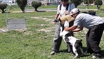 Una mujer se lanzó sobre un perro pitbull para evitar que atacara a su cachorro. Luego de varios minutos lograron que el can suelte a su mascota.