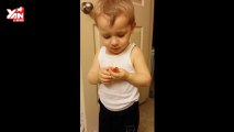 Baby say goodbye to a goldfish