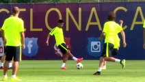 Mascherano nutmeg Neymar in training