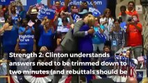 Debate prep: The strengths and weaknesses of Donald Trump Strength 1: He's unpredictable.<br />Whether in politics or business, he takes pride in sizing up opponents based on their language, posture, eye contact, and particularly the needs and goals that his adversaries have at that moment.<br />Strength 2: Mr. Trump reviewed tapes of Mrs. Clinton’s old debates as well as compilations of his own worst moments during the primary face-offs.<br />Strength 3: He's self-confident.<br />He has said repeatedly that he can handle Hillary Clinton on stage.<br />Weakness 1: Can be insulting and demeaning to his opponent, the debate moderator, and voters at large, which can be off-putting.<br />Weakness 2: Tendency to lie on some issues (like his challenge to President Obama’s citizenship) or use incorrect information or advance conspiracy theories Weakness 3: Lacks a range of perspectives from women as he prepares to face the first-ever female general election candidate.