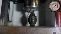 Watch Hydraulic Press Trying To Crush Grenades In This Experiment