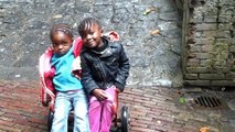 Mara Julie en Luisa Sara spelen in de tuin
