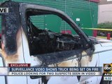 Surveillance video shows truck being set on fire