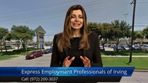 Express Employment Professionals - Irving, TX reviews<br />5 Star Rating<br /><br />Amazing staff team, great job opportunities!!!<br /><br />Express Employment Professionals - Irving, TX<br />4070 N Belt Line Rd #126<br />Irving TX 75038<br />(972) 200-3037<br />www.expresspros.com/irvingfbtx