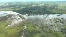 Aerial views in Lumberton, North Carolina of destruction brought on by flooding from Hurricane Matthew