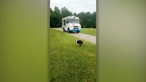 An adorable video has emerged of a toddler buying ice cream for himself and his dog.<br /><br />The footage, shot in Bournemouth, UK on Sunday, shows Harvey and the dog being given ice cream cones by the ice cream man.