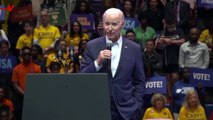 During a campaign rally for Hillary Clinton in Cleveland, Barack Obama urges voters to reject a "dark and pessimistic vision of a country" and mocks Trump fighting "global elites".