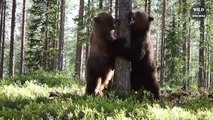 Footage has emerged of a black bear attacking a photographer's phone camera in New Brunswick, Canada on October 8.