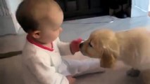 Labrador Puppy Meets Baby For The Very First Time <br />http://eketawa.com